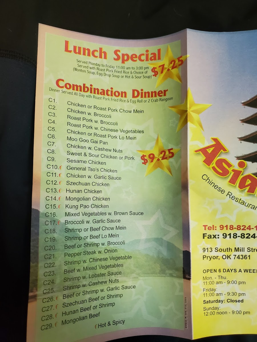 The menu at Asian Star Chinese Cuisine offers a straightforward yet satisfying selection of traditional Chinese dishes served in a comfortable, casual setting. It’s the kind of menu well-suited for a relaxed lunch or a cozy dinner, whether you’re dining in or picking up a meal to enjoy at home or on the go.